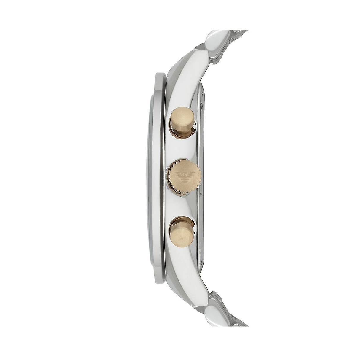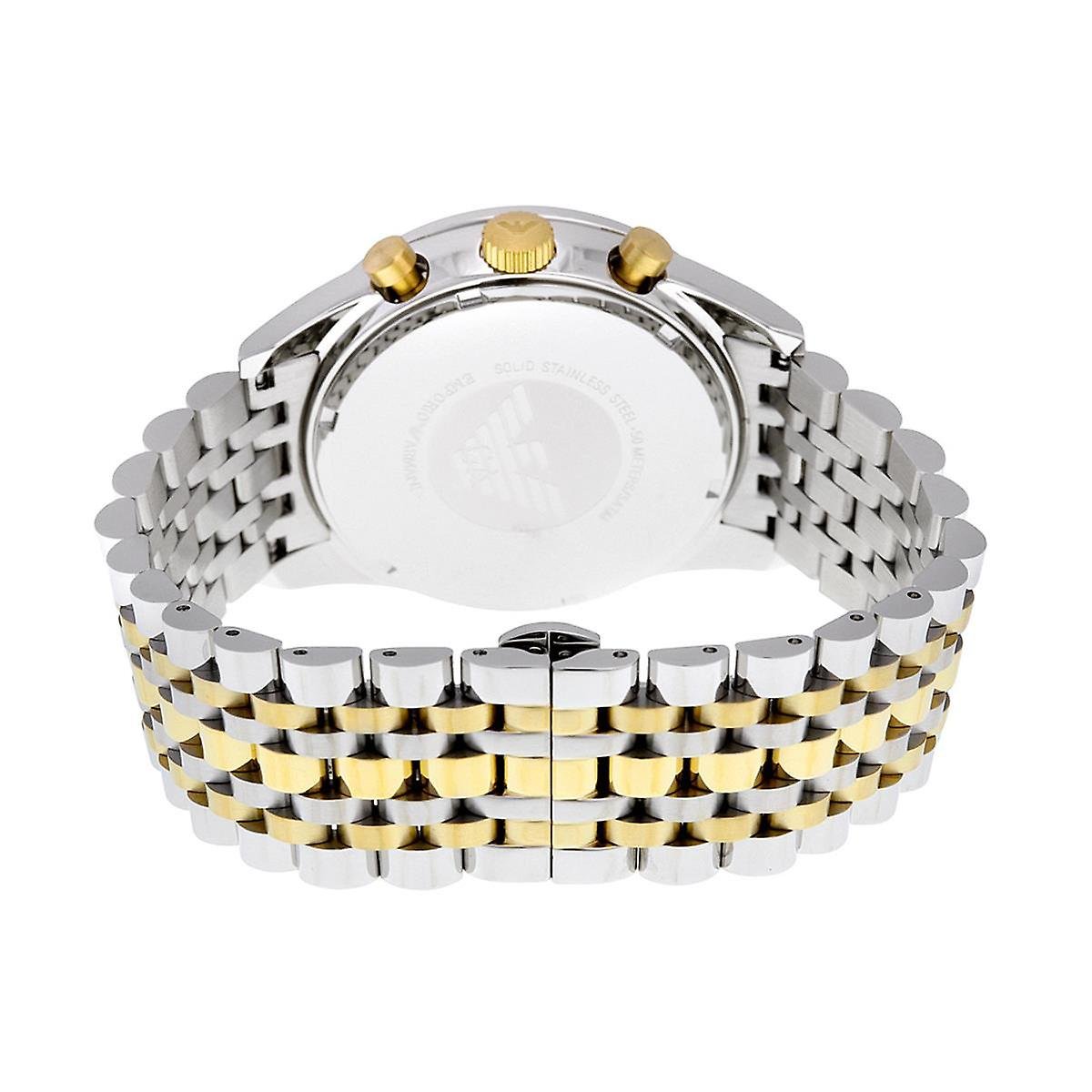Brand: Emporio Armani,  Gender: Men’s,  Case Width: 46 mm  Case Material: Stainless Steel,  Strap Material: Stainless Steel,  Case Colour: Silver and Gold,  Strap Colour: Silver and Gold,  Dial Colour: Blue,  Movement: Quartz,  Additional Features: Date, Chronograph,  Water Resistance: 05 ATM / 50 M,  Packaging: Official Branded Presentation Box,  Warranty: 1 Years.