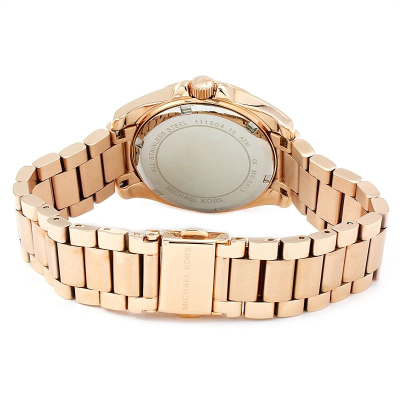 Looking for a bit of glitz and style? This Ladies’ Michael Kors Mini Blair watch is the perfect choice. It is made from PVD rose plating and features a stunning stone set bezel. This design has an elegant rose dial with combination hour markers and date function. It fastens with a rose metal bracelet and powered by a quality quartz movement.