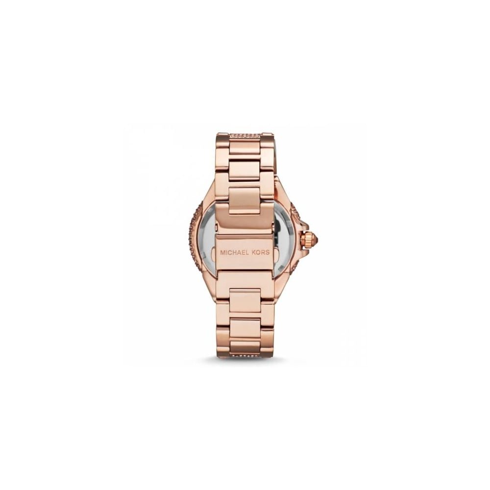 Michael Kors MK5869 Ladies Camile Crystal Pave Dial Crystal Encrusted Watch. Brand: Michael Kors, Model Number: MK5869, Gender: Ladies, Case Width: 44 mm Case Material: Stainless Steel, Strap Material: Stainless Steel, Case Colour: Rose Gold, Strap Colour: Rose Gold, Dial Colour: Rose Gold, Movement: Quartz, Additional Features: Crystals, Water Resistance: 10 ATM / 100 M, Packaging: Official Michael Kors Presentation Box, Warranty: 1 Years.