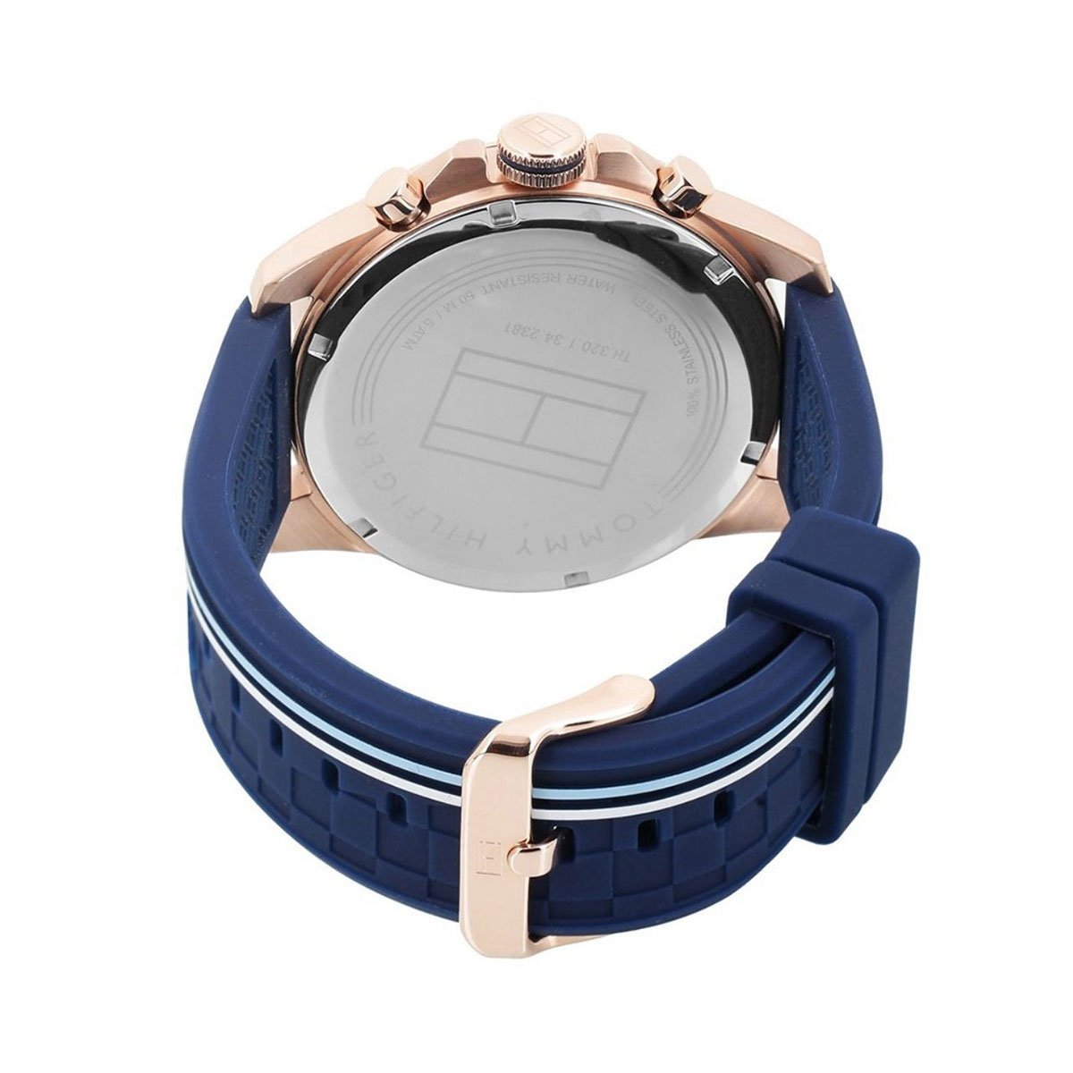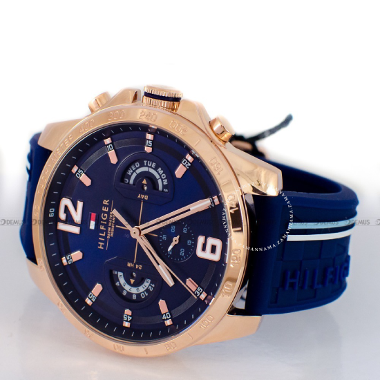 This Tommy Hilfiger Watch Features a Rose Gold Case And A Day-Date Function. This watch Is Presented On a Rubber Strap.